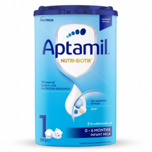 Sữa Aptamil Đức số 1 800g là công thức dinh dưỡng bổ sung một phần cùng bữa ăn của bé trong giai đoạn từ 0 – 6 tháng. Aptamil Đức số 1 cung cấp đến 33 loại vitamin và các khoáng chất thiết yếu giúp bé cân bằng dinh dưỡng, duy trì một cơ thể khỏe mạnh để phát triển toàn diện. Hệ chất xơ GOS/FOS đạt 0.8g/100ml mang đến nguồn sữa mát tốt cho hệ tiêu hóa của bé, bé nhà bạn sẽ hấp thu tốt hơn, hạn chế tối đa bệnh táo bón thường gặp ở nhiều trẻ khi uống sữa công thức. Ngoài ra, trong thành phần dinh dưỡng của sữa còn bổ sung các Nucleotides và Omega 3 từ dầu cá là những dưỡng chất cần thiết và quan trọng cho sự tăng trưởng và phát triển của não bộ, thị giác ở trẻ.